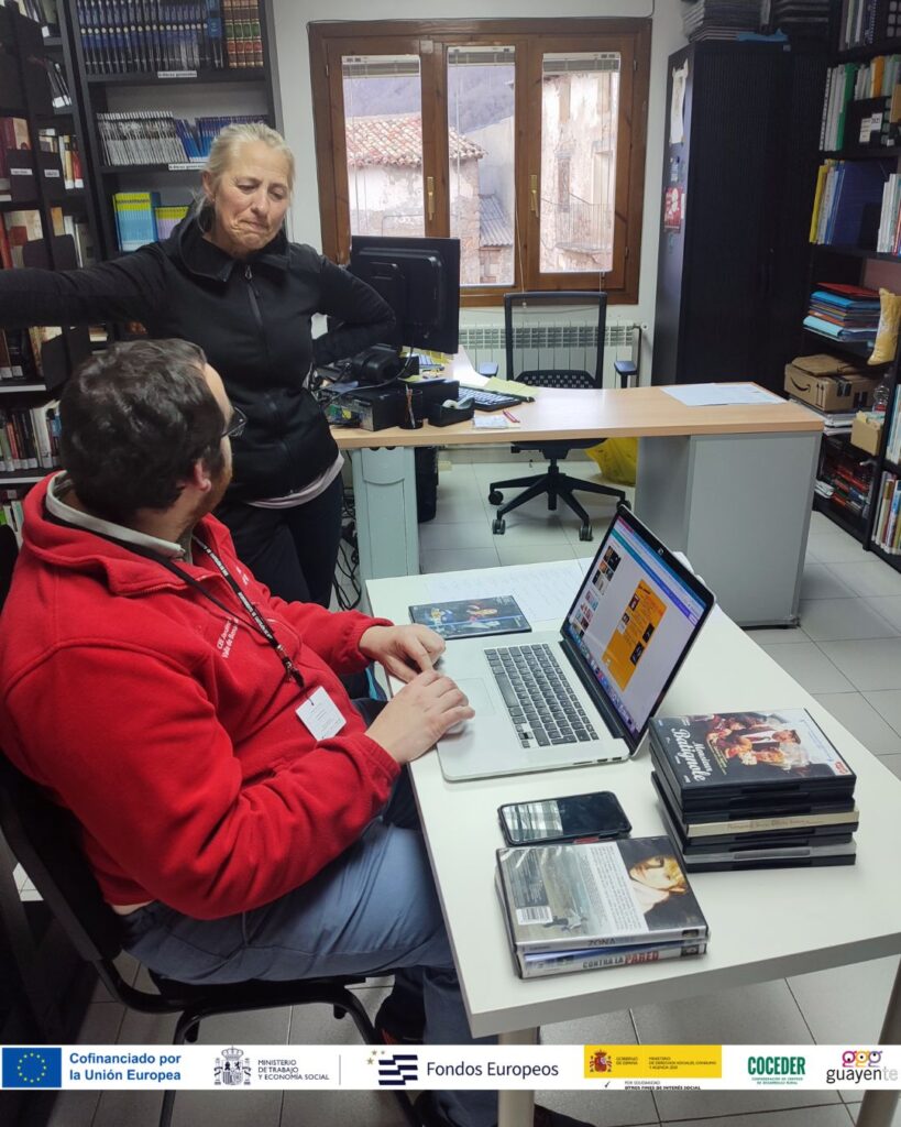 Pedro ha iniciado unas prácticas no laborales en la Biblioteca de Castejón de Sos. Una nueva experiencia muy positiva en la que está aprendiendo a desarrollar las gestiones propias de una biblioteca.